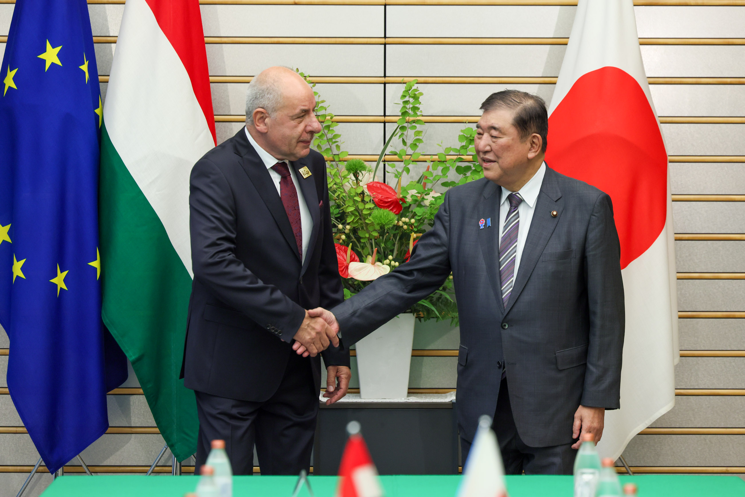 Meeting with President Sulyok of Hungary May 22, 2025 Tweet Prime Minister Ishiba holding a meeting with President Sulyok (1) Prime Minister Ishiba welcoming President Sulyok (1) Prime Minister Ishiba welcoming President Sulyok (2) Prime Minister Ishiba holding a meeting with President Sulyok (2) Prime Minister Ishiba holding a meeting with President Sulyok (3) Prime Minister Ishiba holding a meeting with President Sulyok (4) Prime Minister Ishiba holding a meeting with President Sulyok (5) [Provisional translation] On May 22, 2025, Prime Minister Ishiba held a meeting with H.E. Dr. Tamás Sulyok, President of Hungary, at the Prime Minister’s Office. More