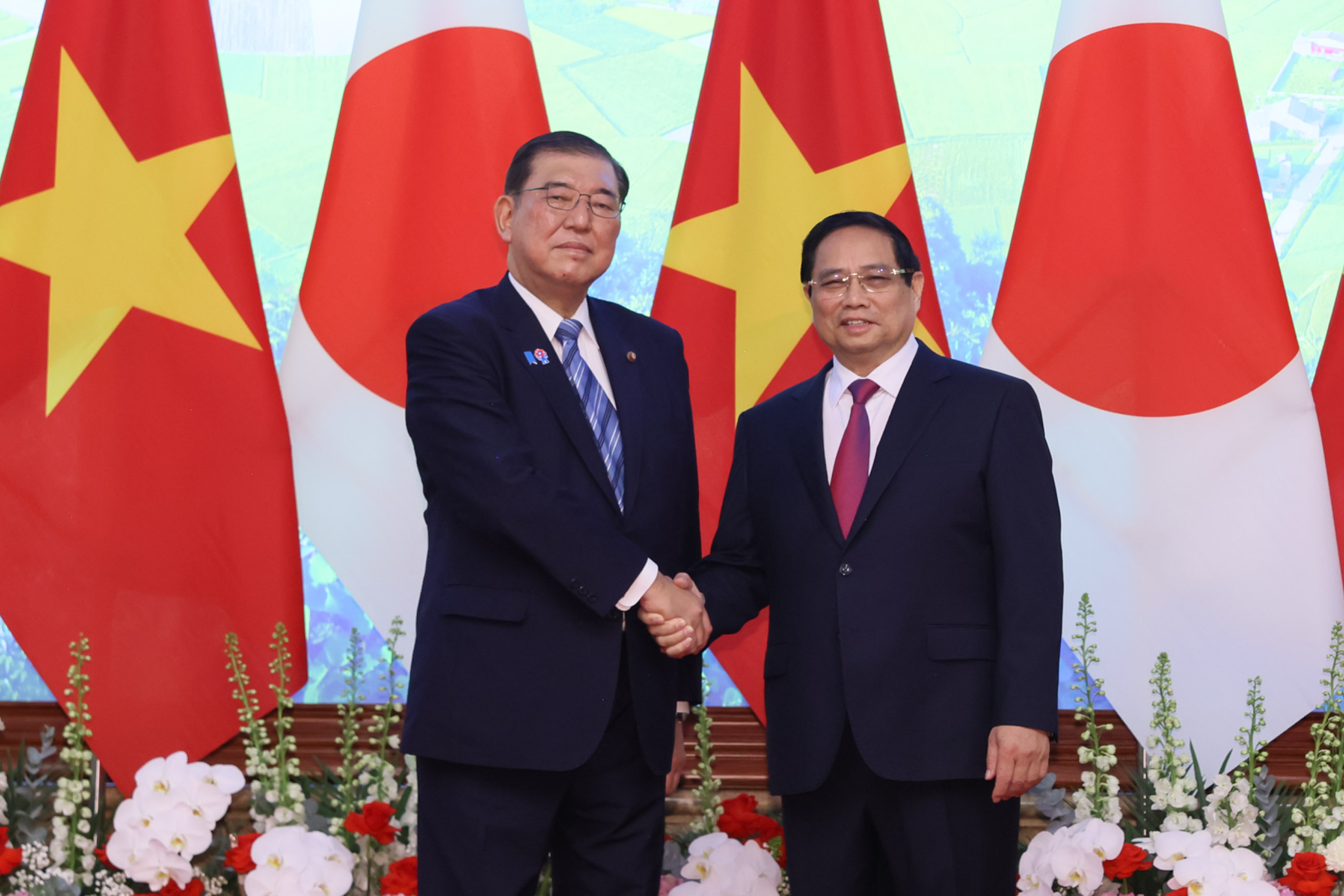 Prime Minister Chinh welcomed Prime Minister Ishiba's visit and he stated that it is a pleasure to see the development of Japan-Vietnam relations in various fields. He conveyed his intention to closely cooperate with Prime Minister Ishiba in further strengthening the bilateral relations and in responding to regional and international issues based on the “Comprehensive Strategic Partnership”. Prime minister Chinh also expressed his congratulations on the successful hosting of the Osaka-Kansai Expo.” Prime Minister Ishiba expressed his heartfelt gratitude for the warm hospitality extended during his visit and emphasized Japan's commitment to maintaining and strengthening a free and open international order based on the rule of law and a multilateral free trade system. He reaffirmed Japan's position as Vietnam's irreplaceable partner in the "new era." He further stated that strengthening relations with the rapidly growing Viet Nam would contribute to the stability and prosperity of both countries and the region, and expressed a desire to upgrade Japan-Vietnam cooperation.